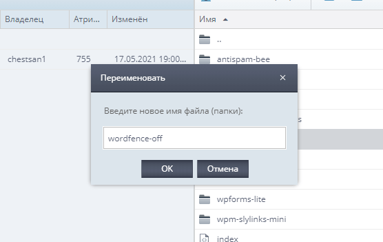 Для этого я просто переименую этот плагин. И добавлю в конце плагина любые символы. Чтобы было понятнее напишу «off». В переводе с английского «выключенное состояние».
